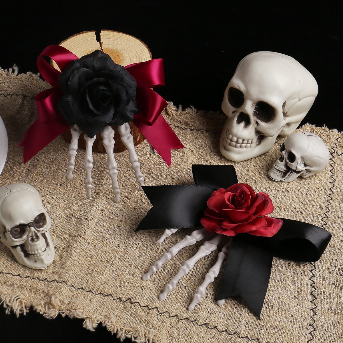 Halloween Skeleton Hand Skeleton Hair Clip Ghost Festival Horror Rose Bow Ghost Hand Side Clip Hair Accessories Party Hair Clip